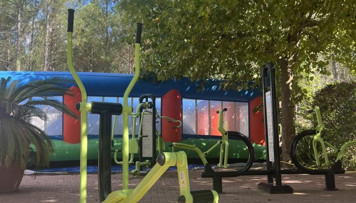 A our campsite, you can exercise on 6 different fitness equipment. This new equipment located next to the kids playground, allows you to have a physical activity while watching your children in the inflatable kids play area.